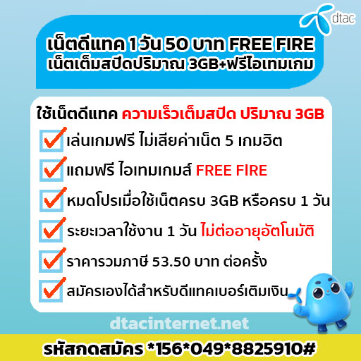โปรเน็ตดีแทคเติมเงิน : dtac internet สมัครเองได้
