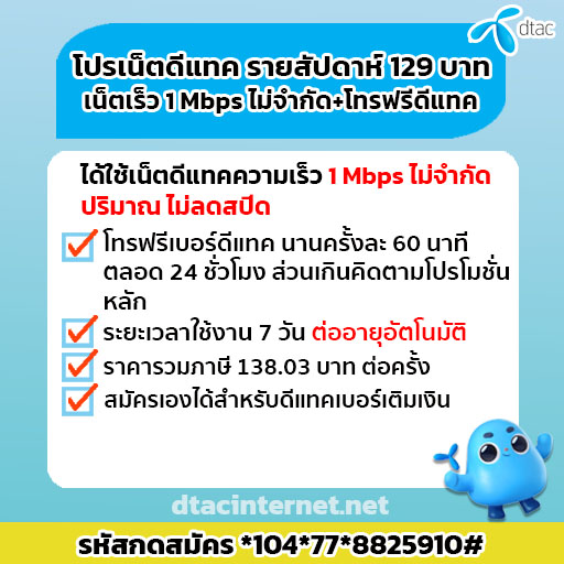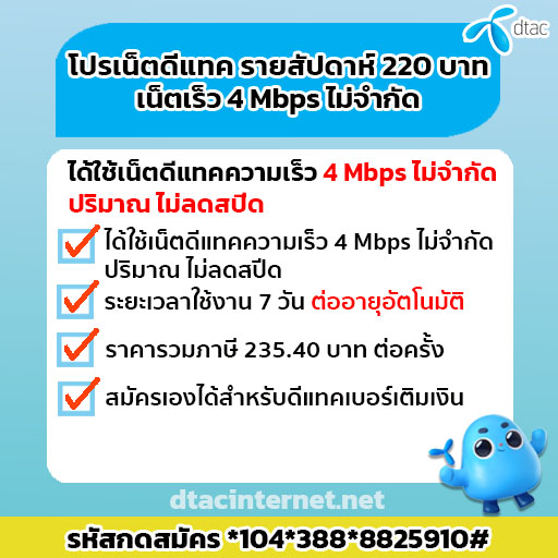 โปรเน็ตดีแทคเติมเงิน : dtac internet สมัครเองได้