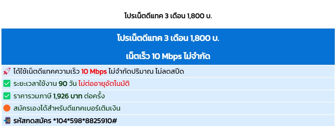 โปรเน็ตดีแทคสุดคุ้มเน็ตแรงเต็มสปีด 10 Mbps Dtacinternet 4 ปี ago โปรเน็ตดีแทคสุดคุ้มเน็ตแรงเต็มสปีด 10 Mbps โปรสุดคุ้มสำหรับลูกค้าดีแทค ใช้งานได้สุงสุด 90 วันแบบไม่ลดสปีด สำหรับลูกค้าใช้งานระบบเติมเงินกดสมัครได้เลยค่ะ