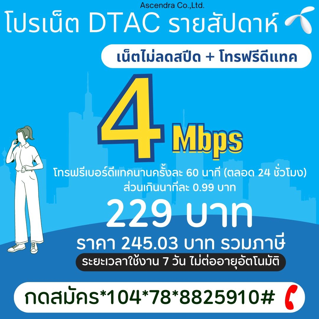 สมัครเน็ตดีแทค รายเดือน 229 บาท รวมภาษี ความเร็ว 4 Mbps+โทรฟรีดีแทคสุดคุ้ม เน็ต+ค่าโทร แพ็คเกจรายเดือน ไปดูรายละเอียดกันนะคะ